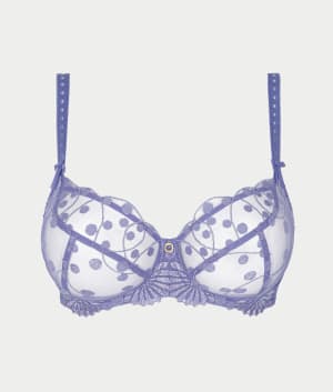 • Exquisitely embroidered tulle cups and microfiber back