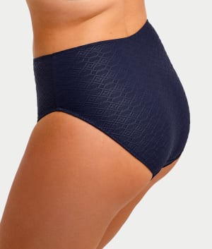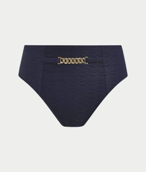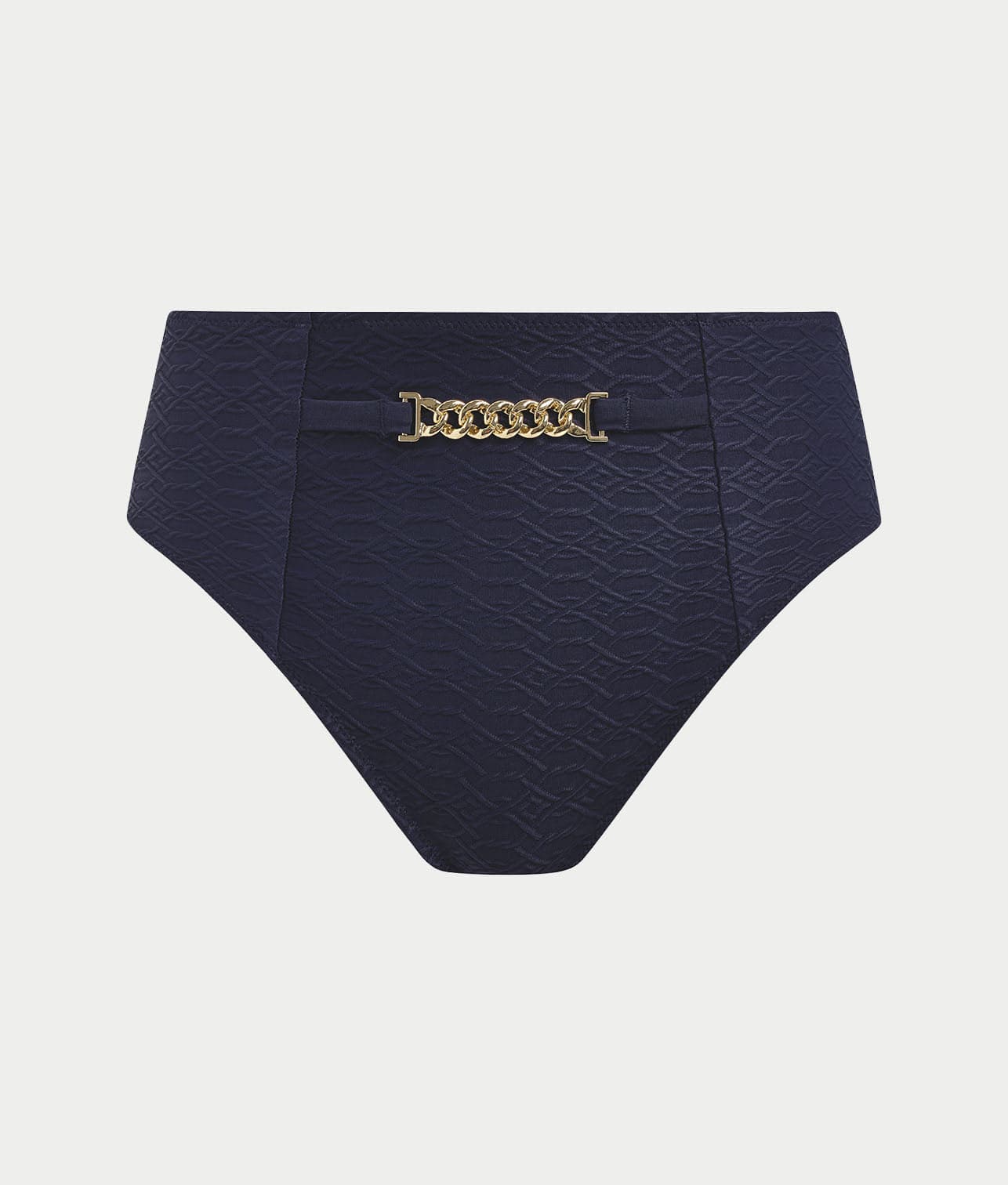 - Fully lined fuller coverage swim bottom with intricate knot-effect embossing throughout