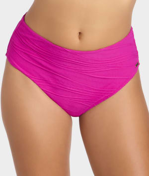 - Flattering high rise coverage and higher cut leg