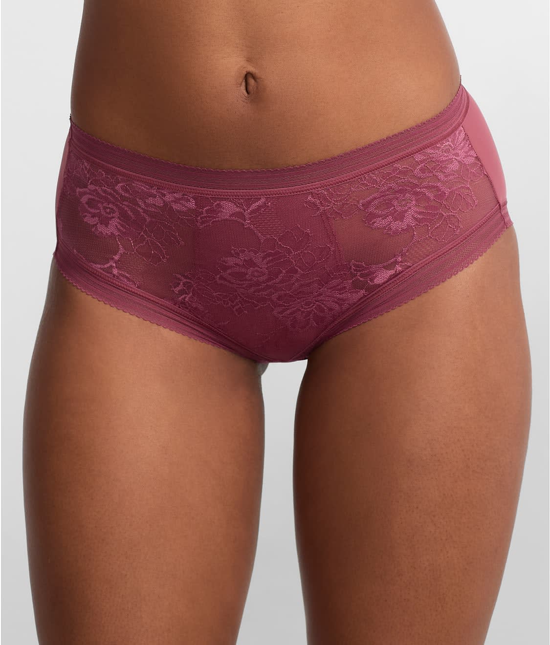 • Flat scalloped elastic at waist and leg openings eliminates VPL