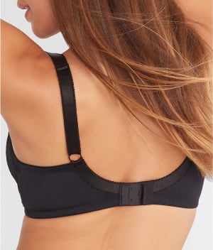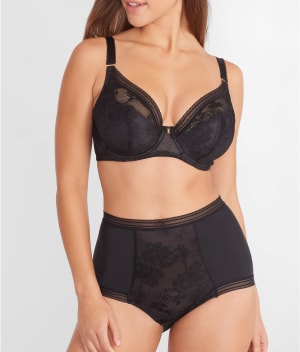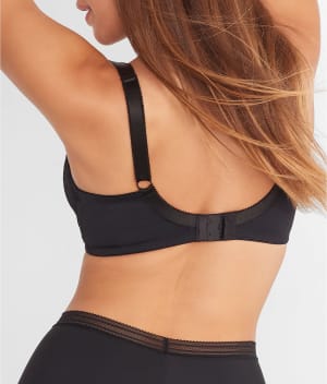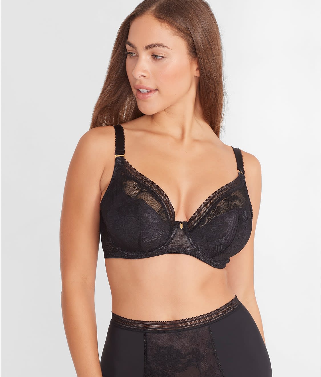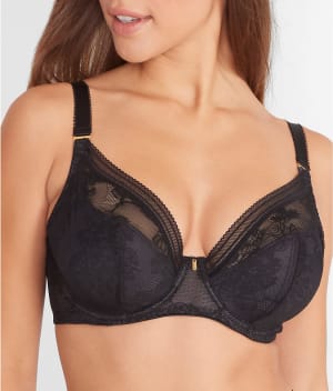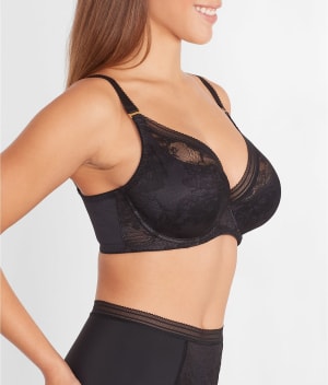 • Flat lace adorns cups with elasticated neckline for a custom fit