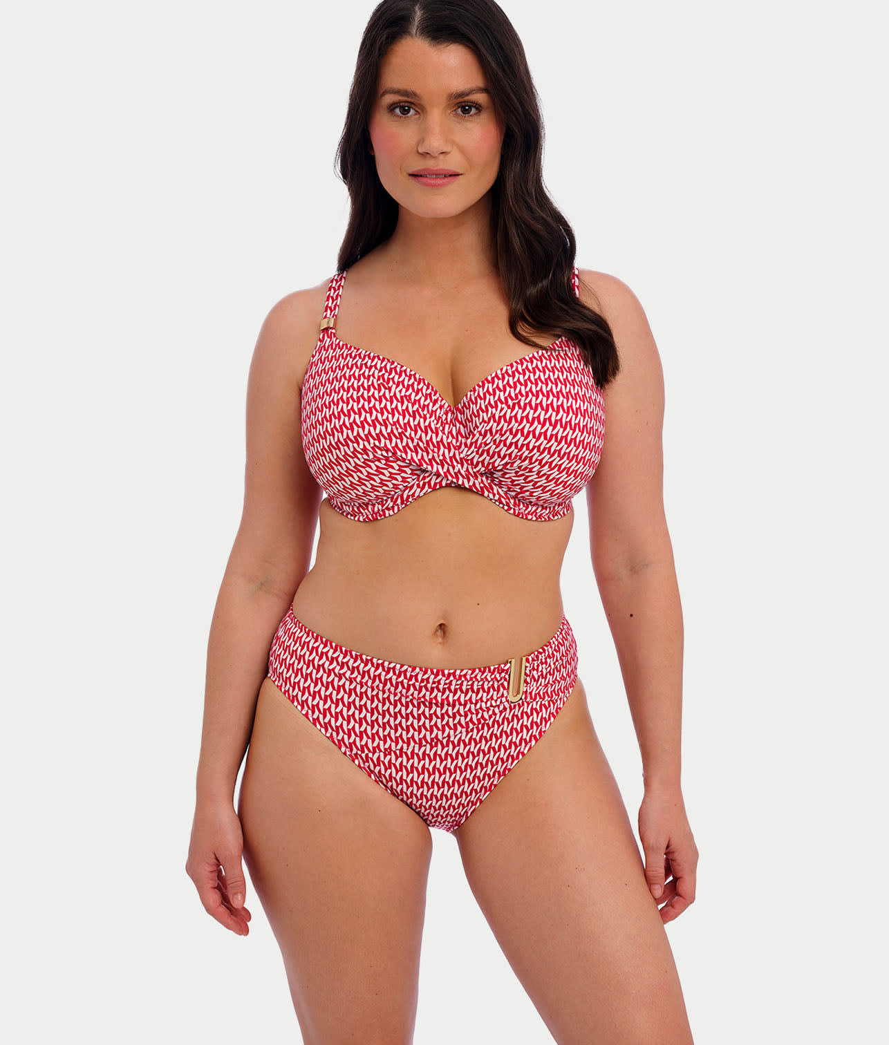 - Mesh-lined underwire cups with front ruching detail