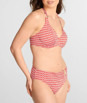 • Plunge, seamed mesh-lined underwire cups provide lift