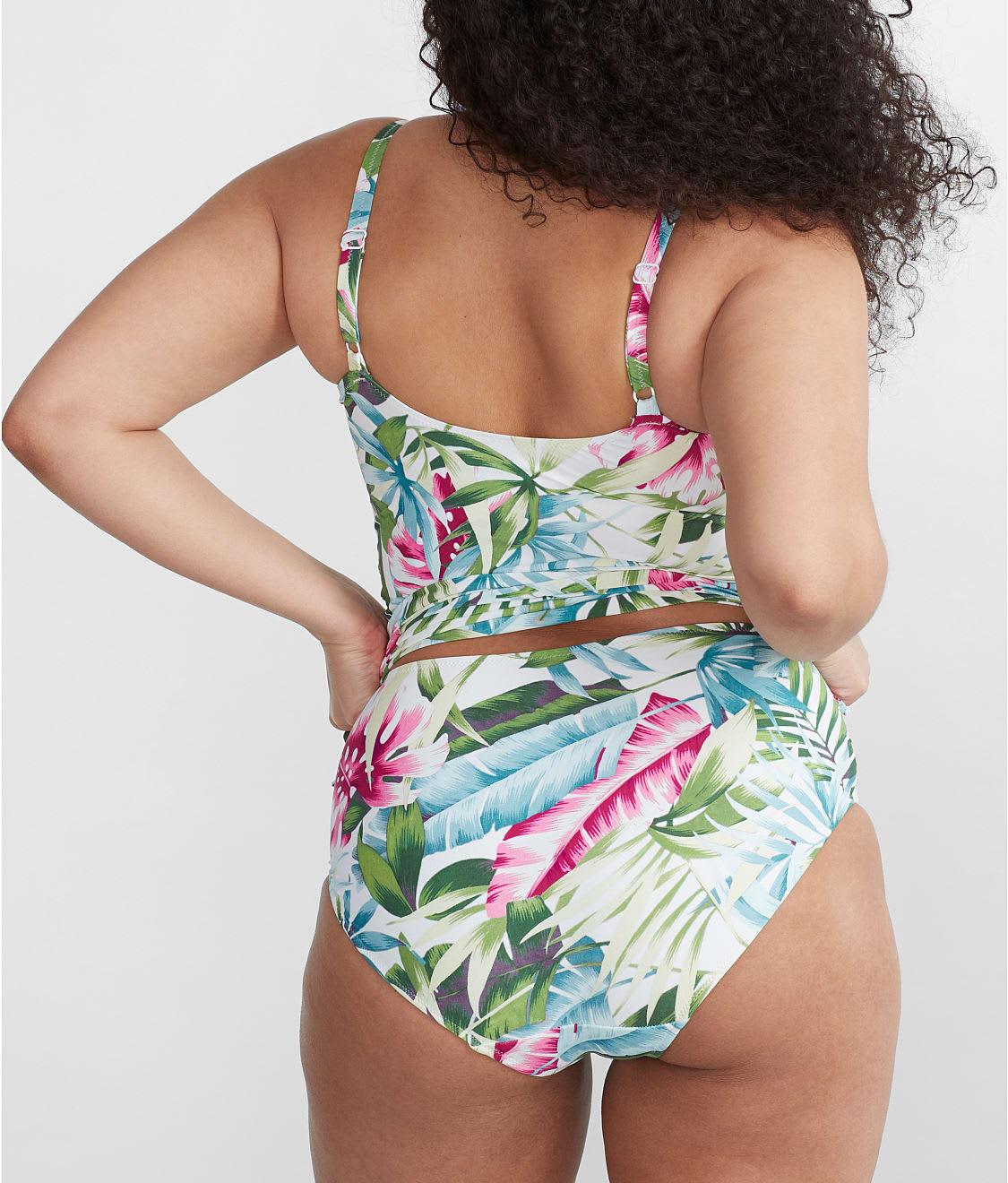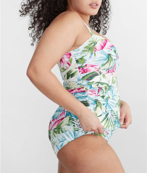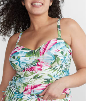 • Underwire tankini top with breezy tropical palms