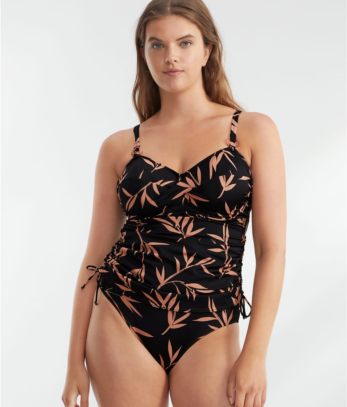 - Delicate bamboo print underwire tankini top
