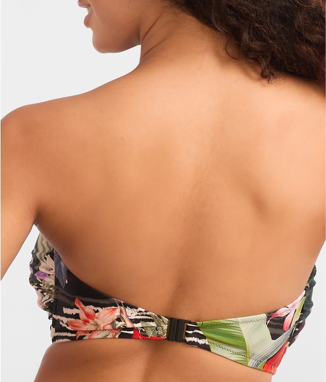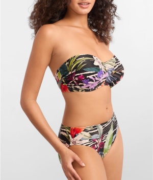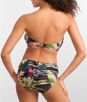 • Hit the beach in this bandeau bikini top with tropical leaves