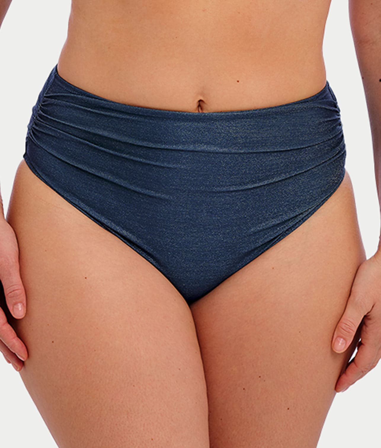 - Look chic in this full coverage, high-waist swim bottom with shimmer