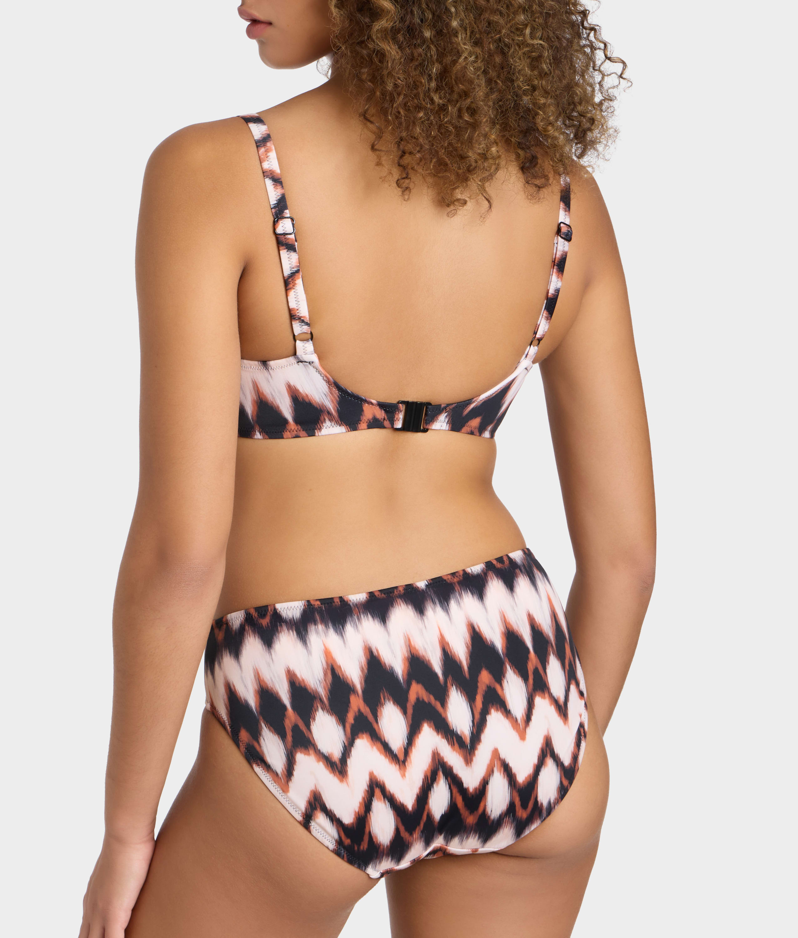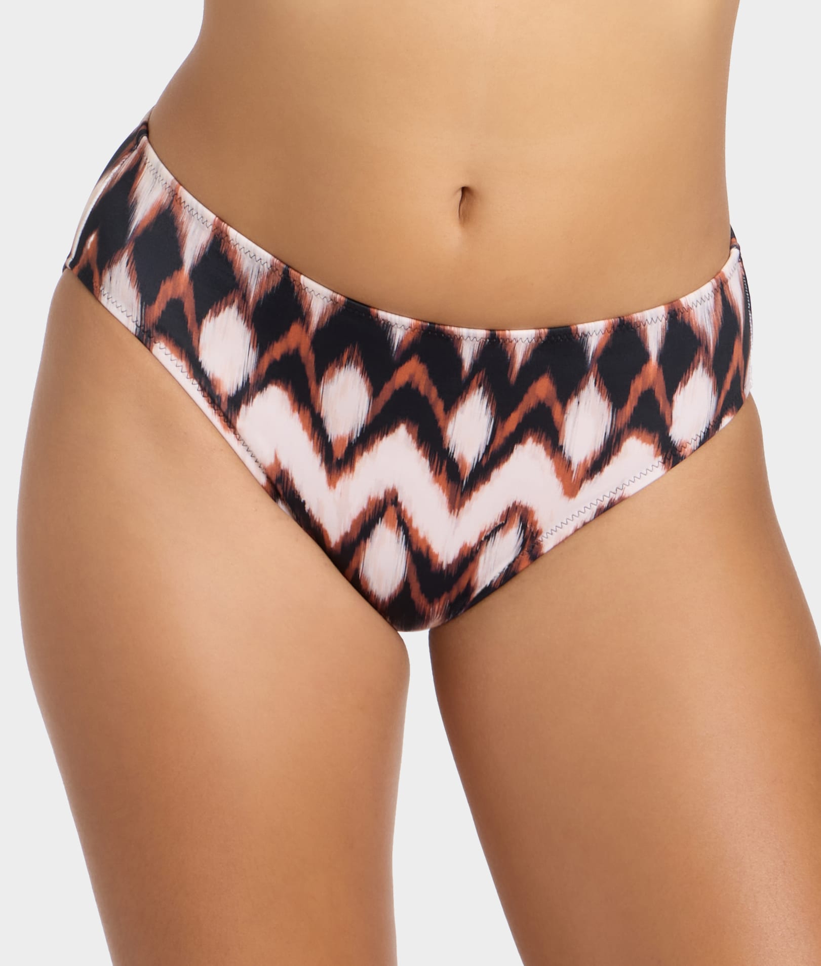 - Mid rise bikini brief with an earthy color palette