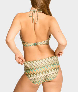 Body: 61% Polyester, 15% Polyamide, 13% Elastane, 11% Metallic. Lining: 80% Polyamide, 20% Elastane.