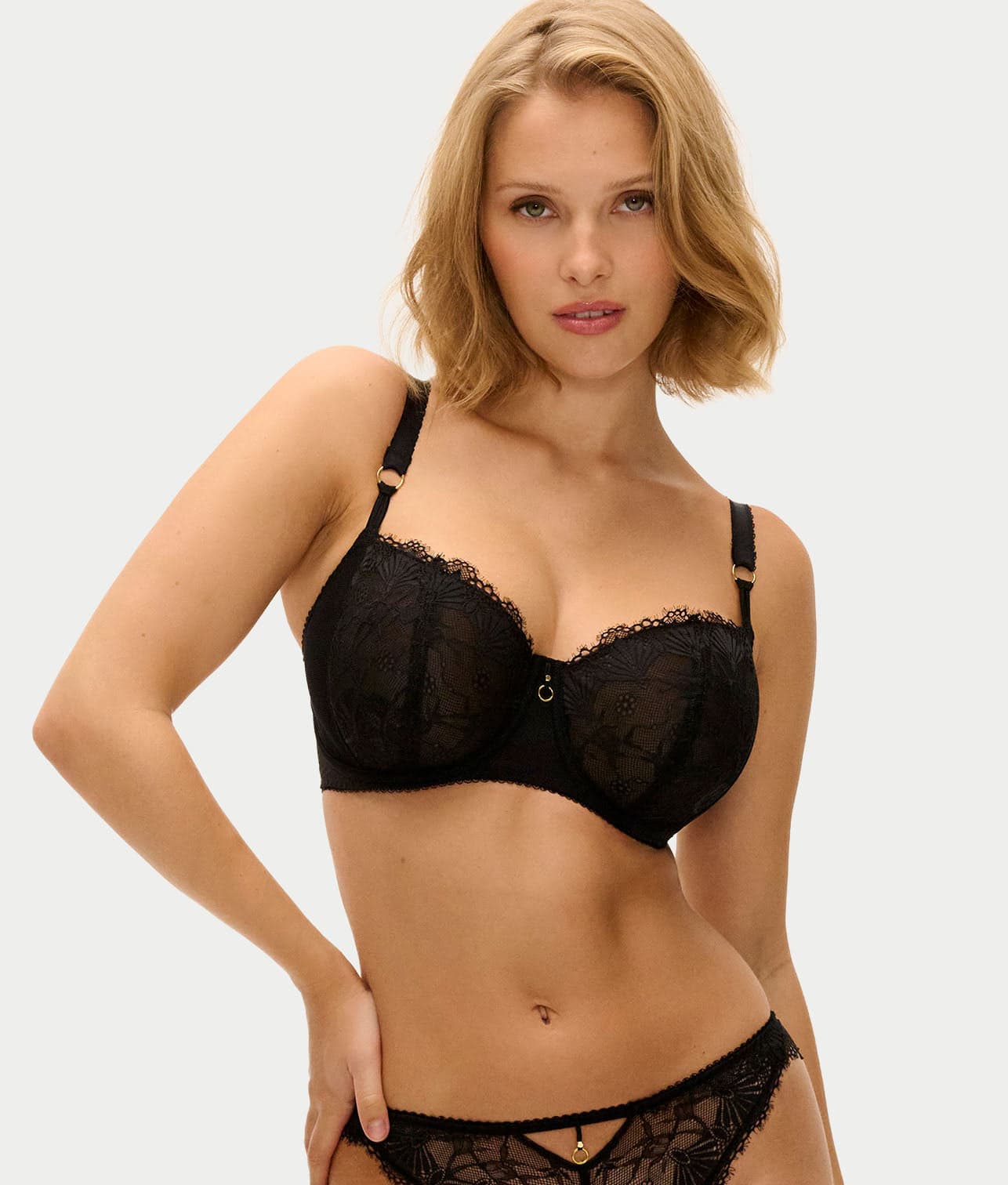 - Stunning 3-part cup underwire bra with decorative eyelash lace