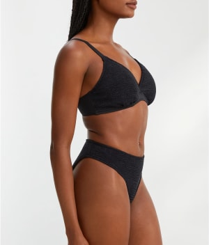 • Have a great beach day in this textured plunge bikini top