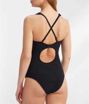• Hit the beach in this scoop neck textured one-piece