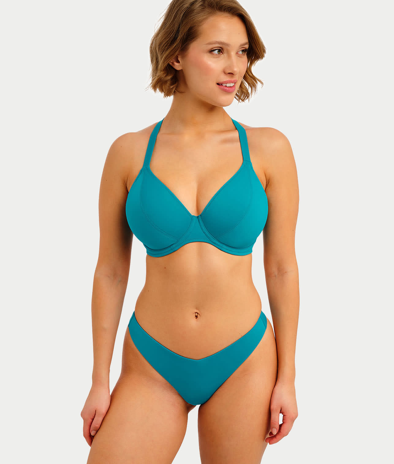 • Classic bikini top with a low plunging neckline