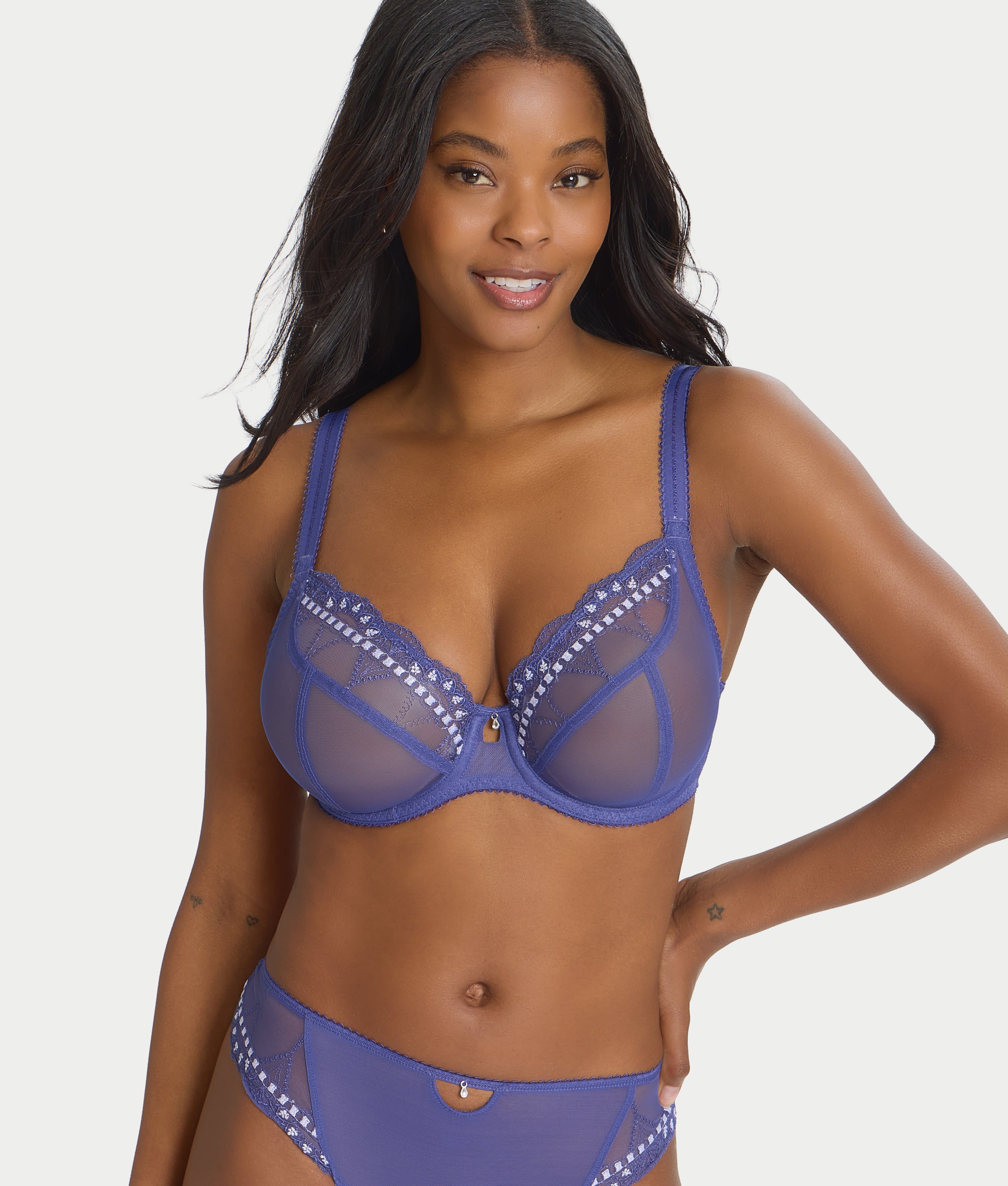 • Sexy plunge mesh bra with delicate embroidery