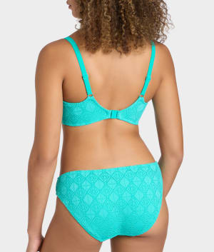 • Low rise swim bikini with textured patterned crochet