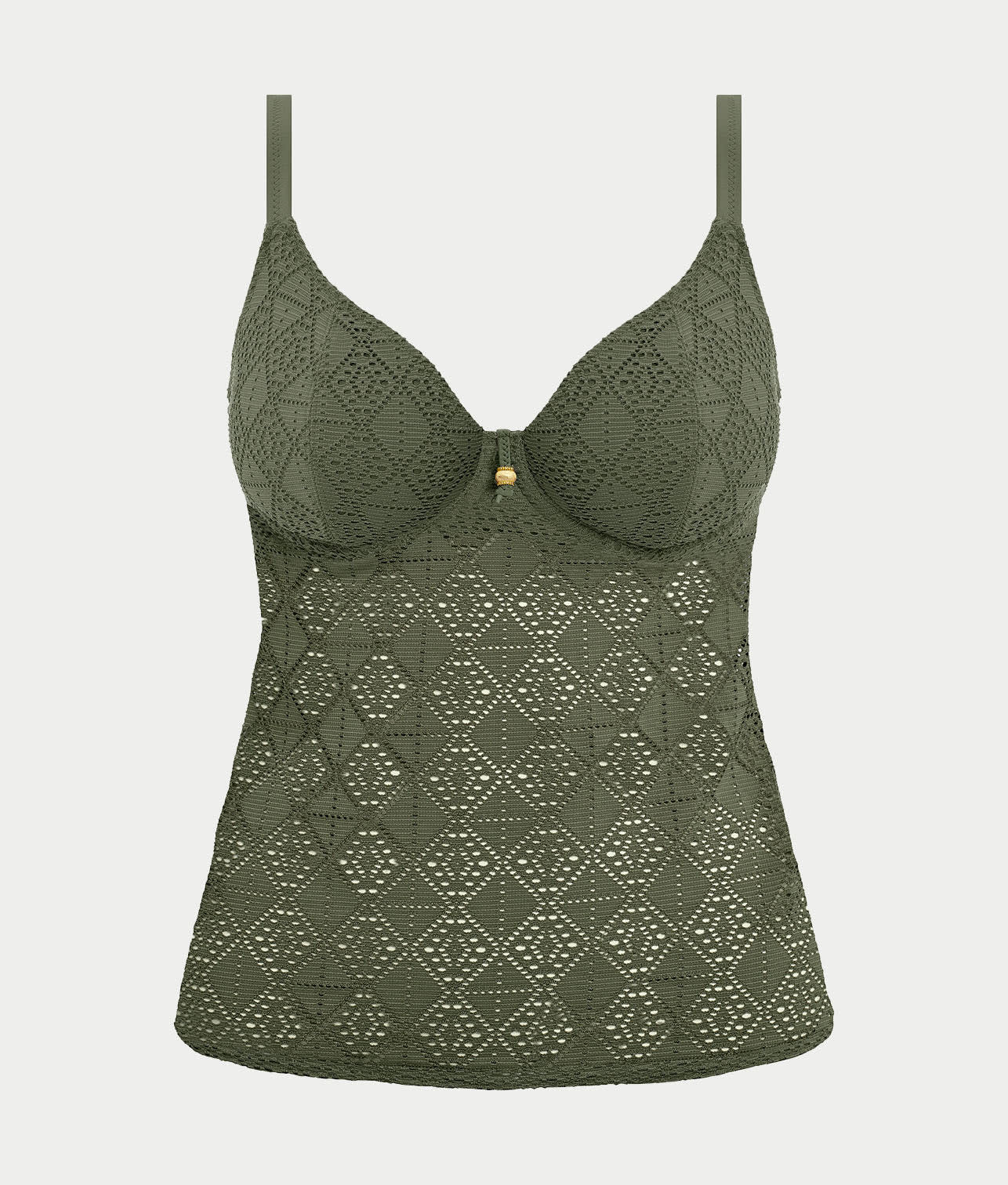 Nomad Nights Underwire Plunge Tankini Top Cup Size