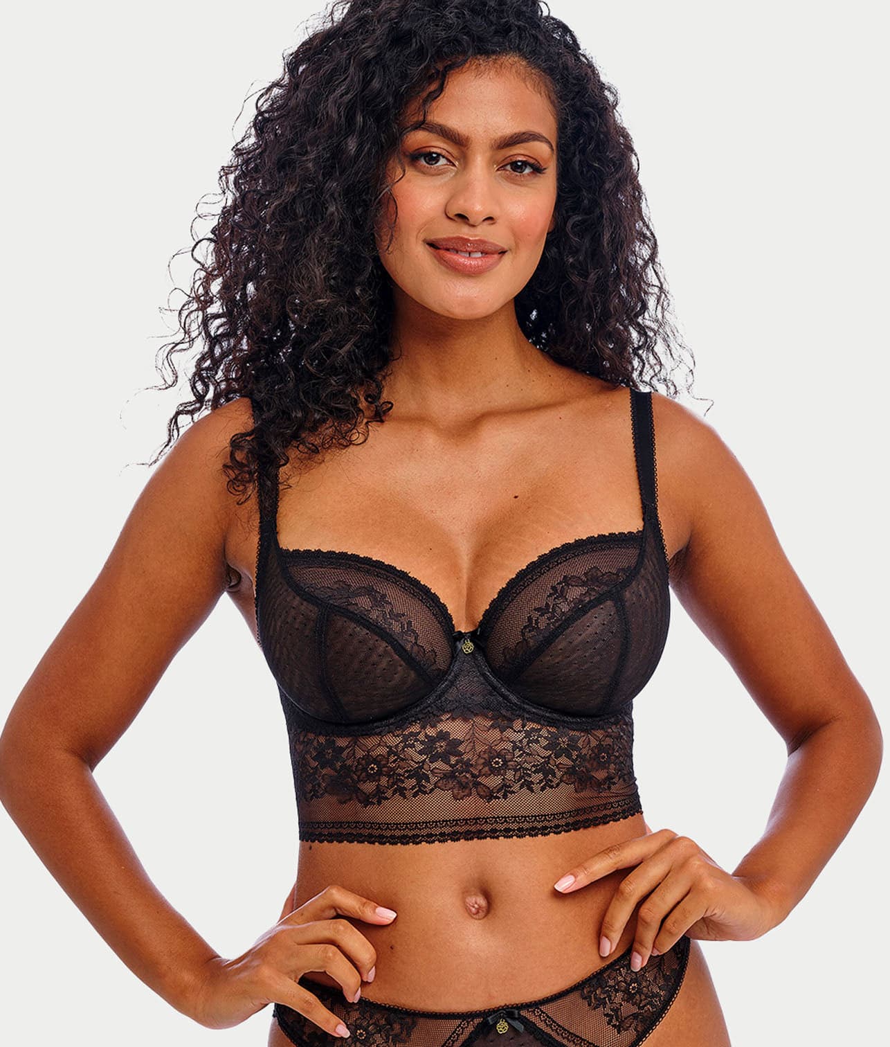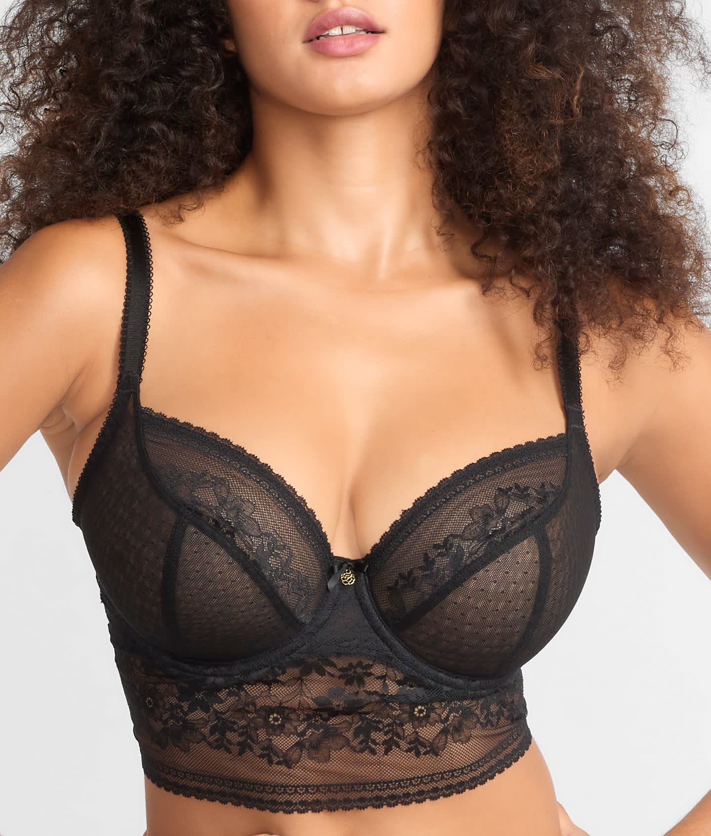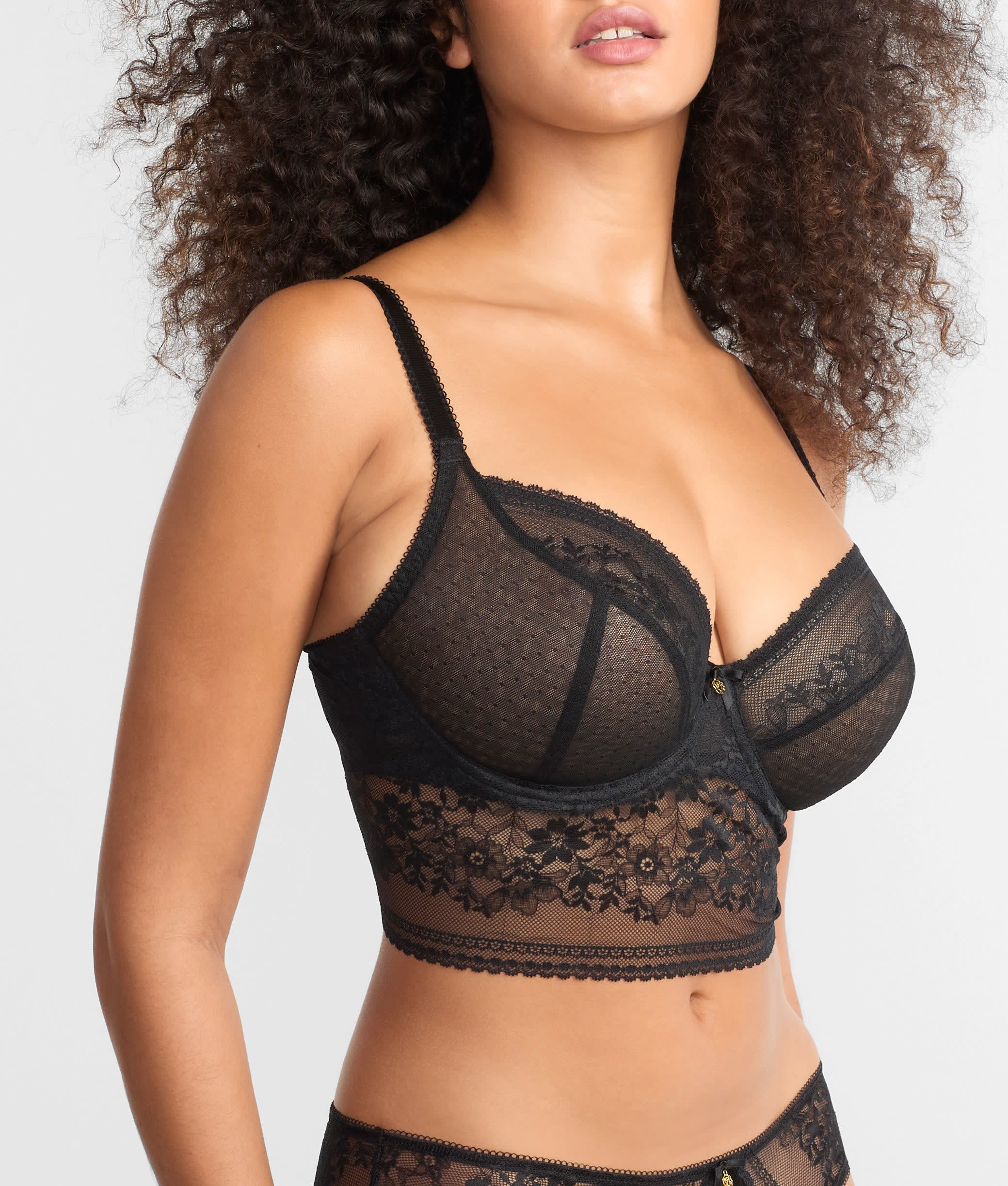 • Chic longline underwire bra with pretty stretch floral lace