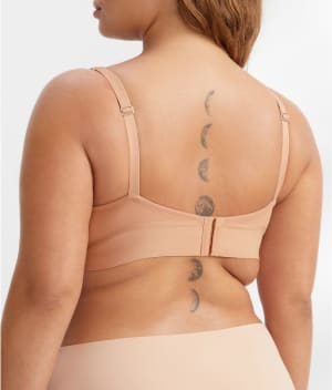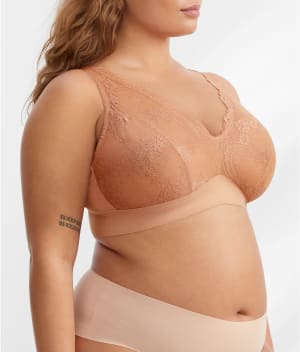 • Plunging, mesh-lined seamed cups with scalloped neck