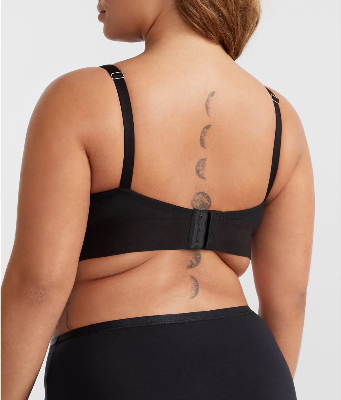 - Plunging, mesh-lined seamed cups with scalloped neck