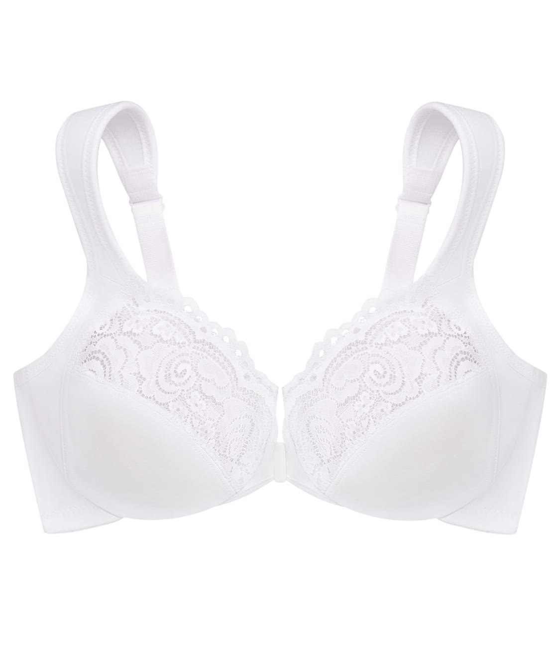 • Feel confident in this comfy front-close, underwire bra