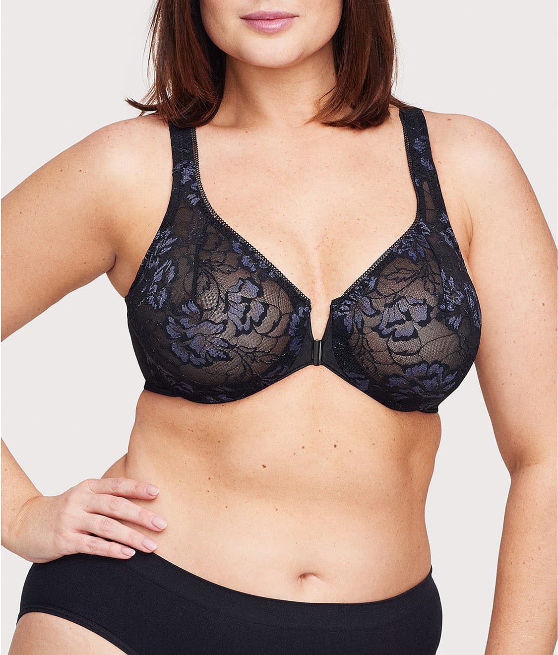 WonderWire Lacey T-Back Front-Close Bra Cup Size