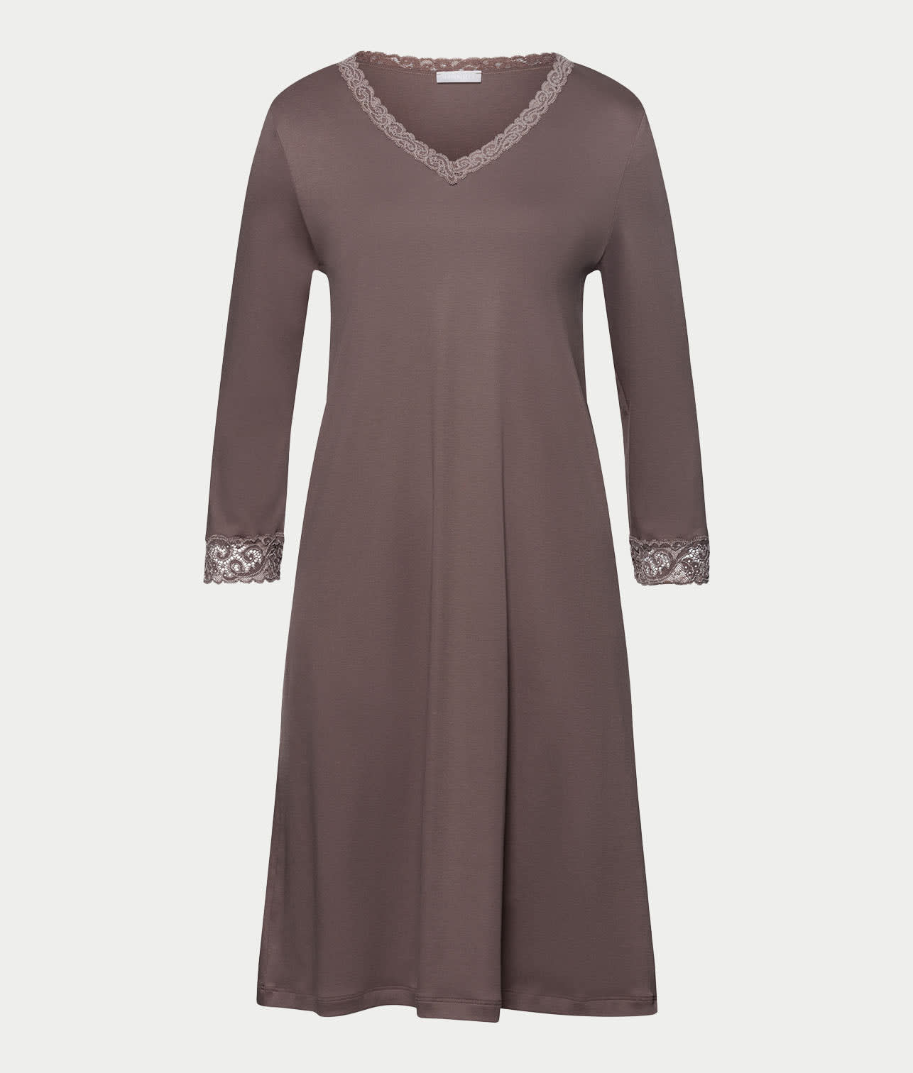 - Decadent lace on neckline and sleeves adds a feminine touch