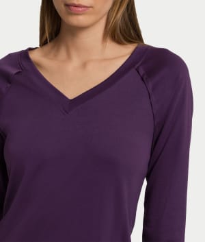 - V-neckline and 3/4 sleeves add to this trendy sleep shirt