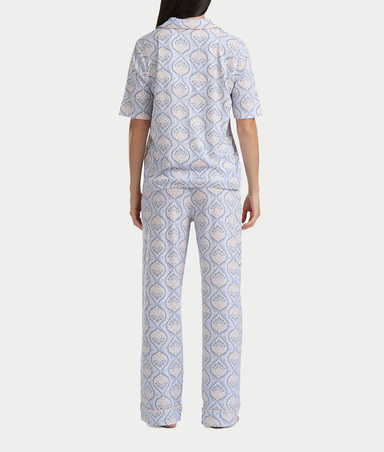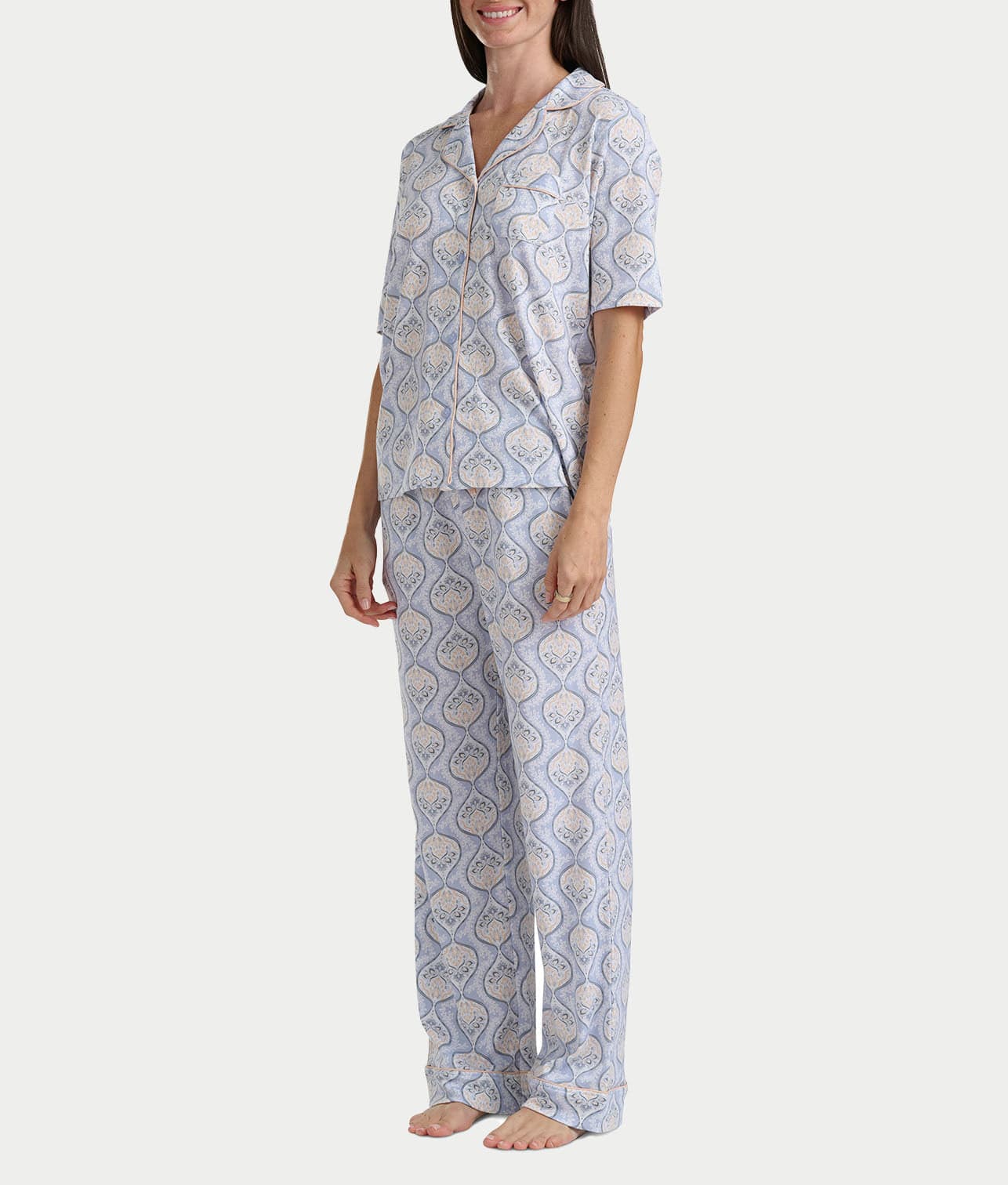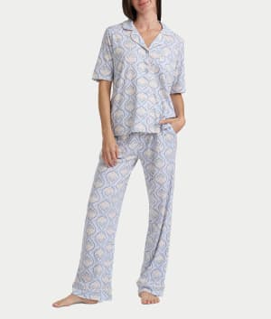 • Sweet dreams in this printed elbow-length short sleeve pajama set