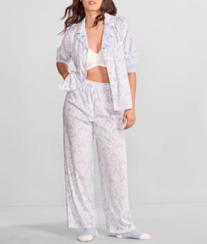• Elastic waistband on pants with 28'' inseam; no pockets