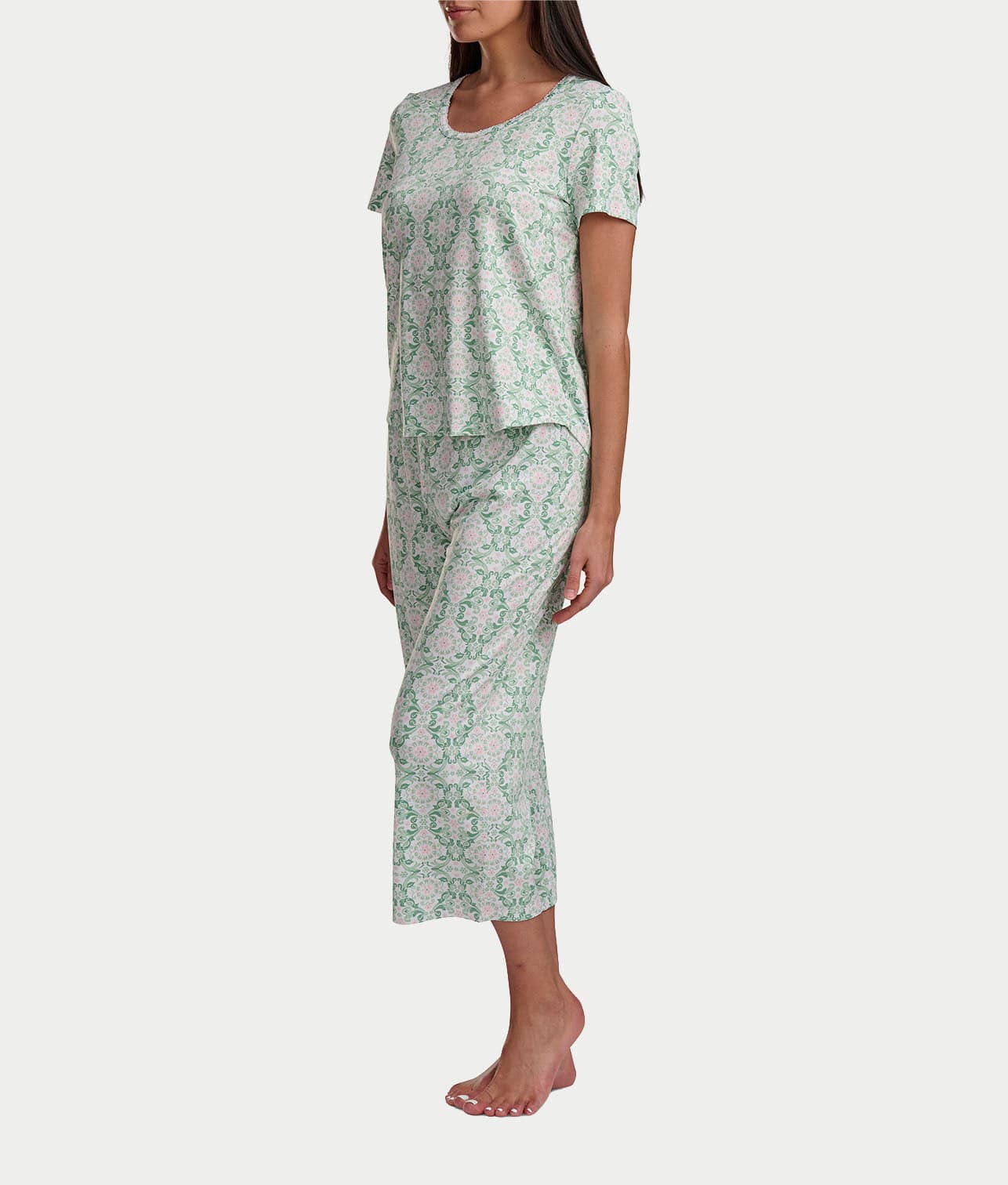 KN Cool Scoop Neck Tee Knit Capri Pajama Set Color