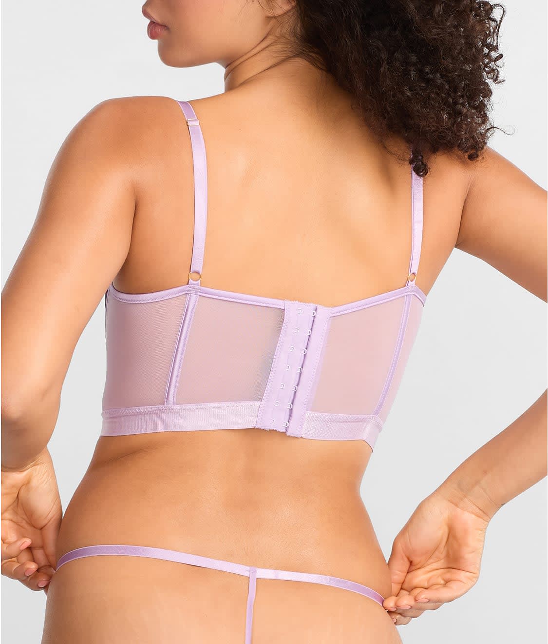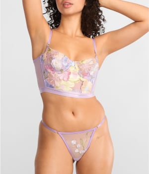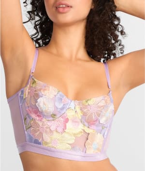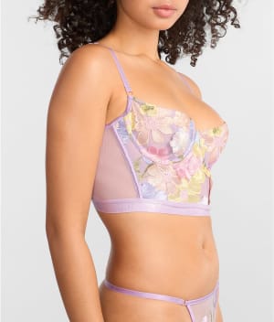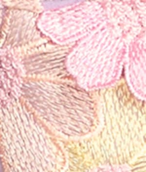 • Sheer mesh bodice with 3D pastel floral embroidery