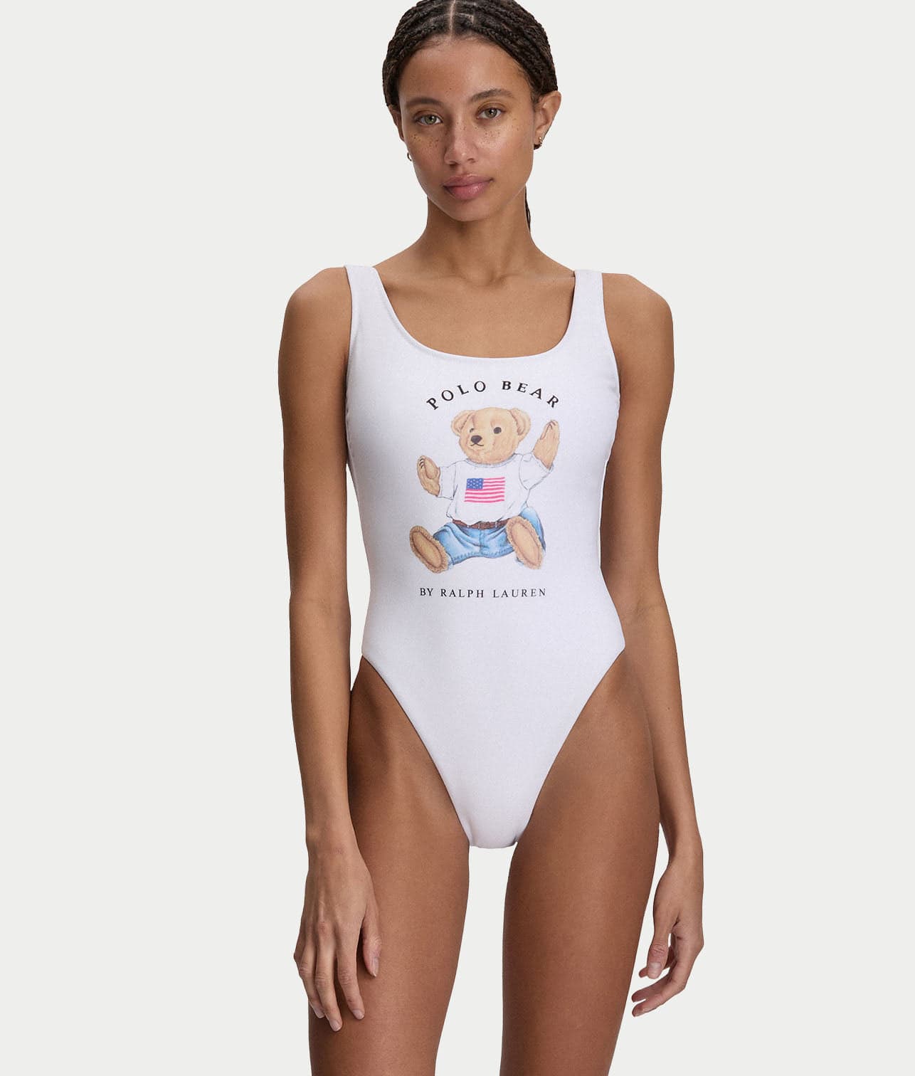 - Fun graphic print at center with iconic Polo bear