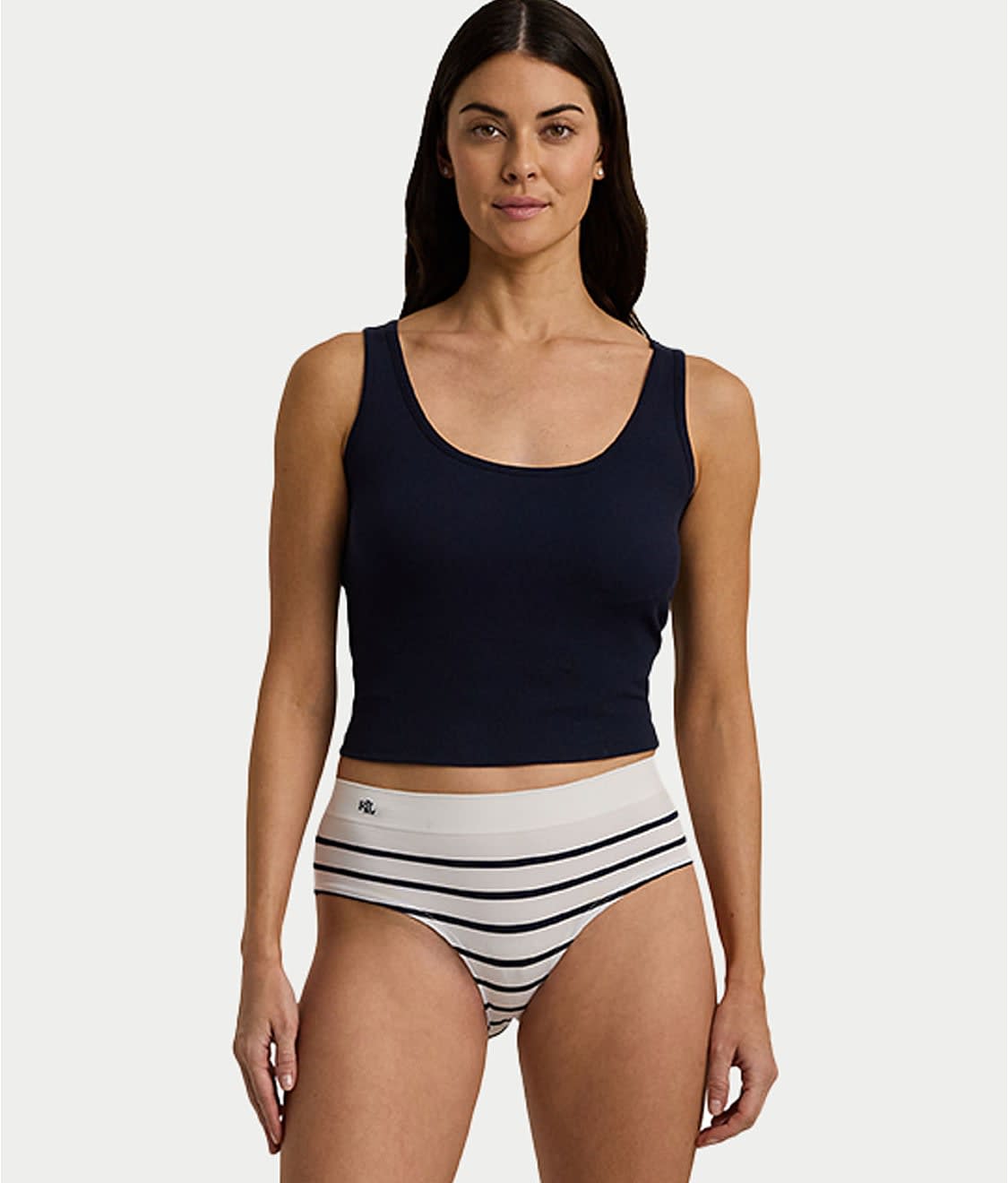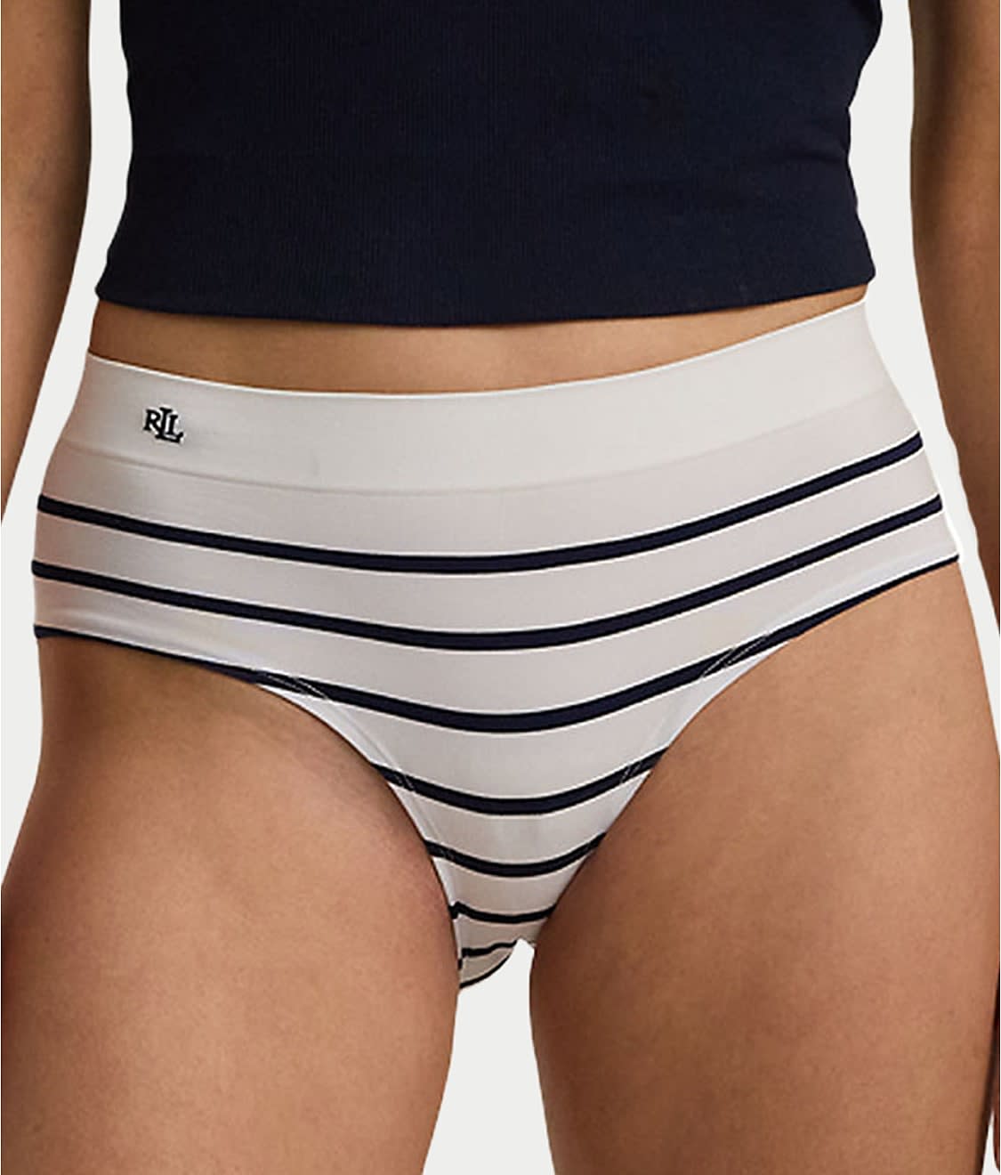 • Mid-rise with LRL knit-in logo at right hip