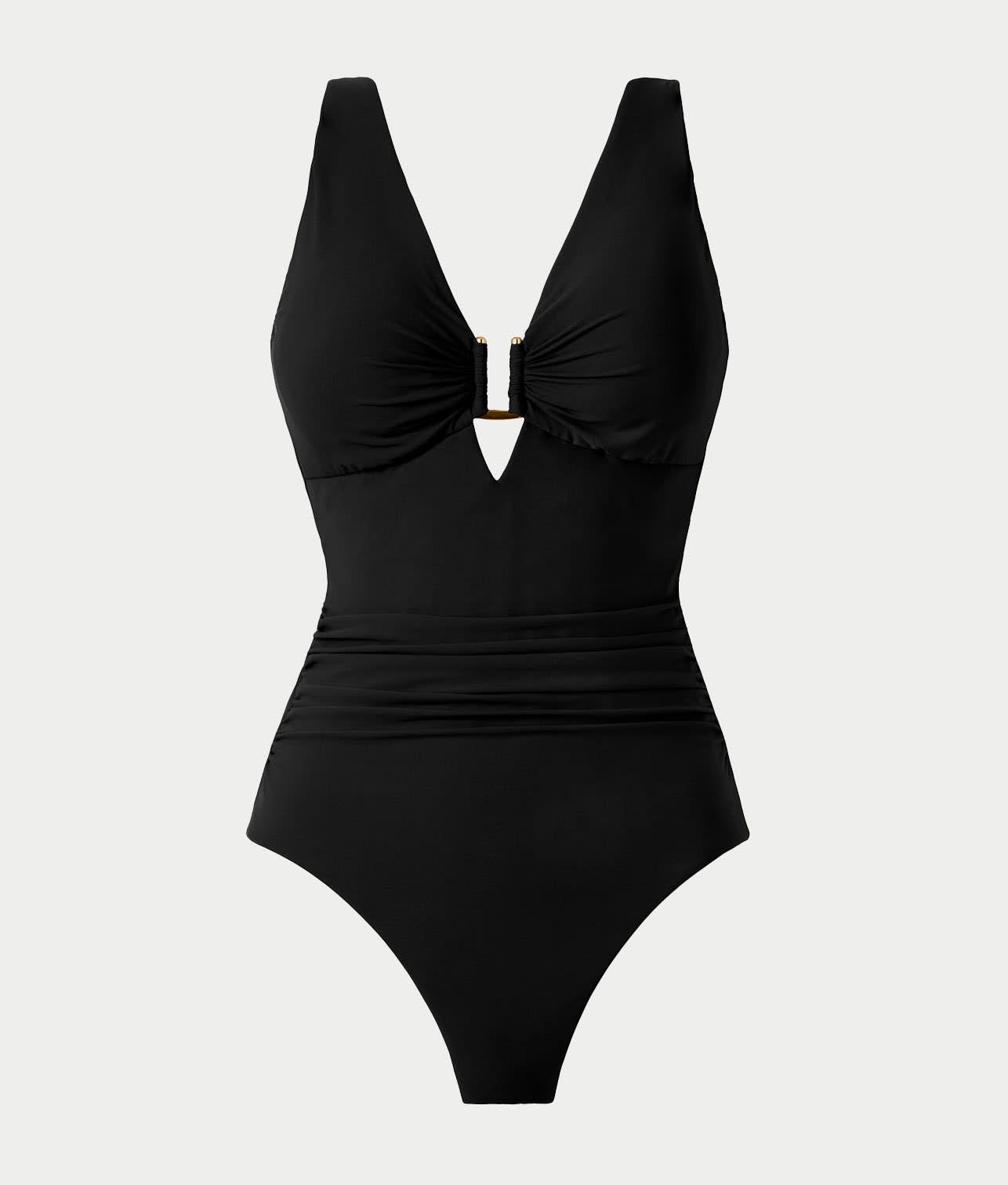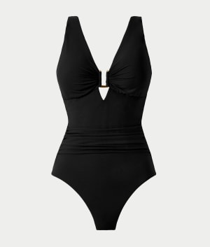 • Chic hardware detail at plunging neckline
