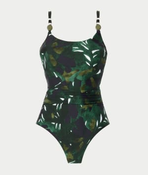 - Flattering one-piece with lush, deep-toned greenery