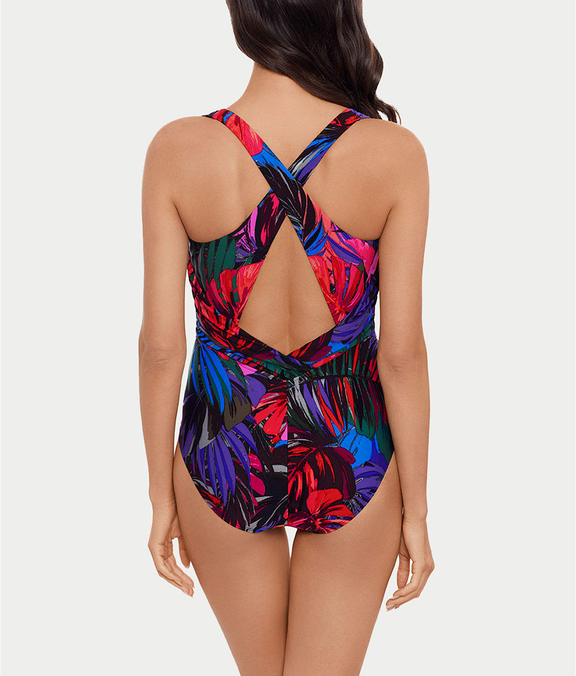 • Wide, criss-cross stretch straps in back are non-adjustable
