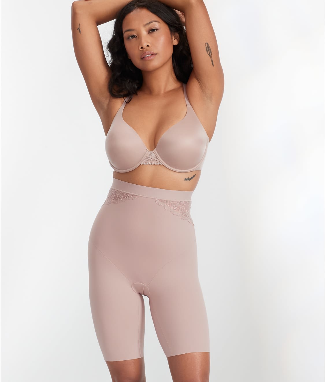 • Enjoy firm control smoothing in this mid-thigh shaper