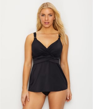 Solid Underwire Plunge Tankini Top D-DDD Cups Cup Size