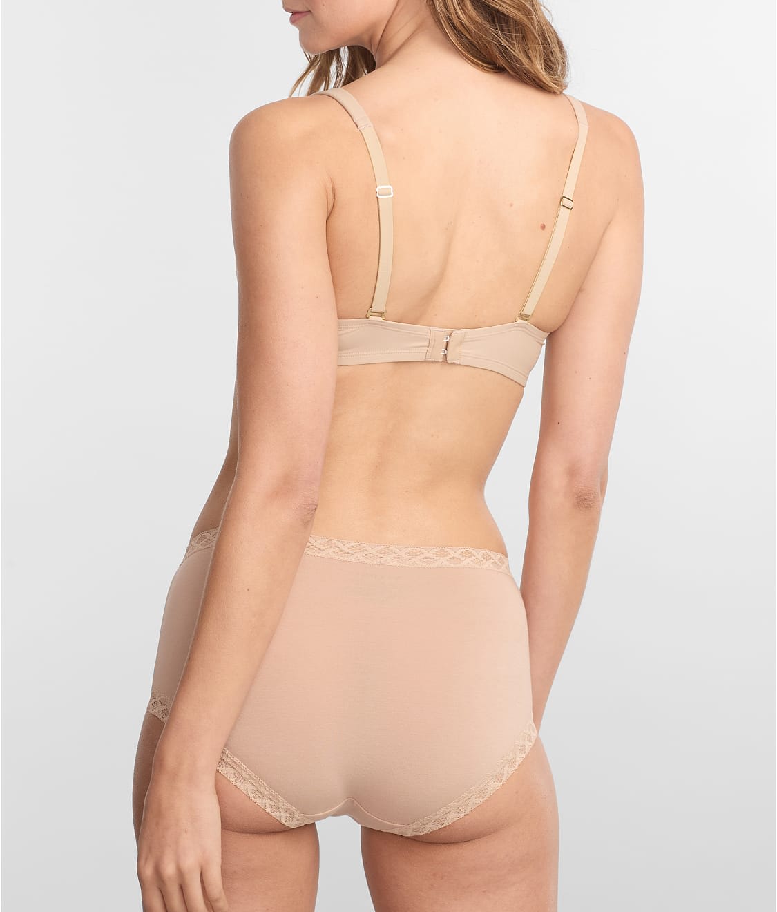 Body: 94% Pima Cotton, 6% Lycra Spandex. Lace: 84% Nylon, 16% Spandex.