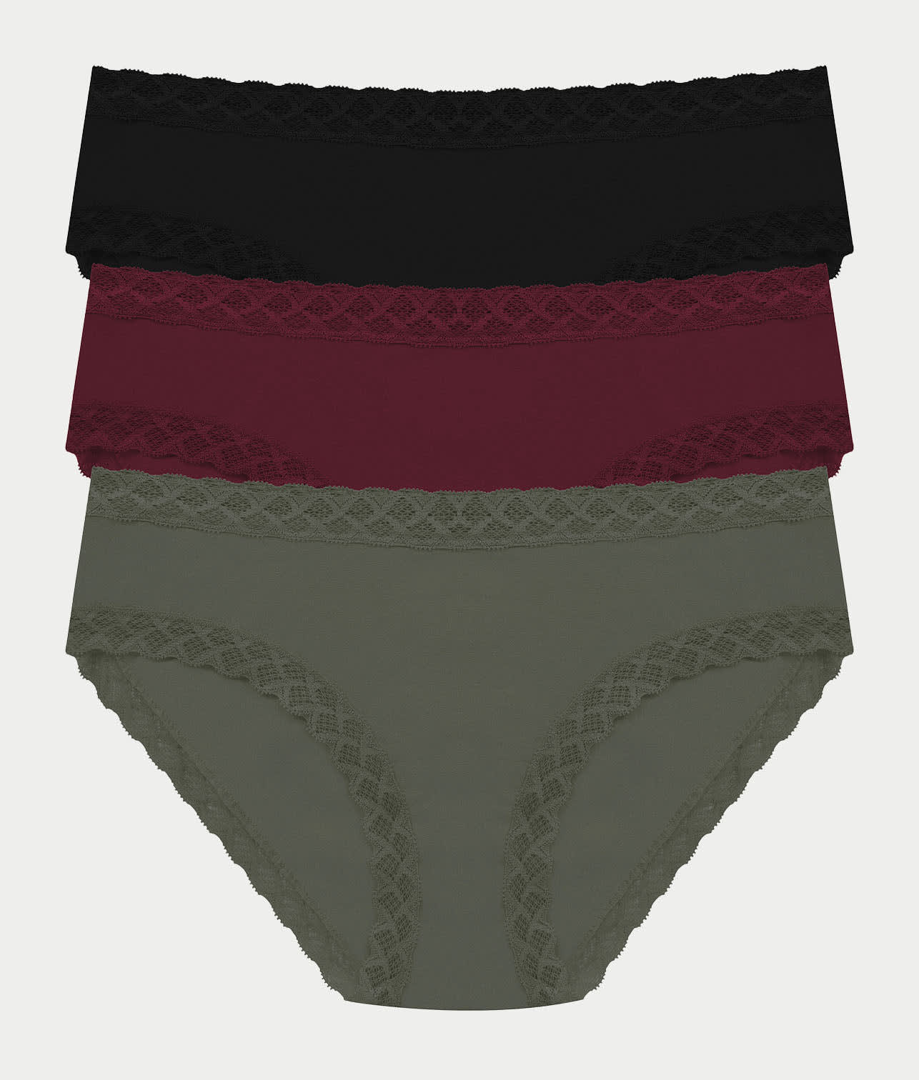 • Flat lace leg bands and elastic waist lay flat