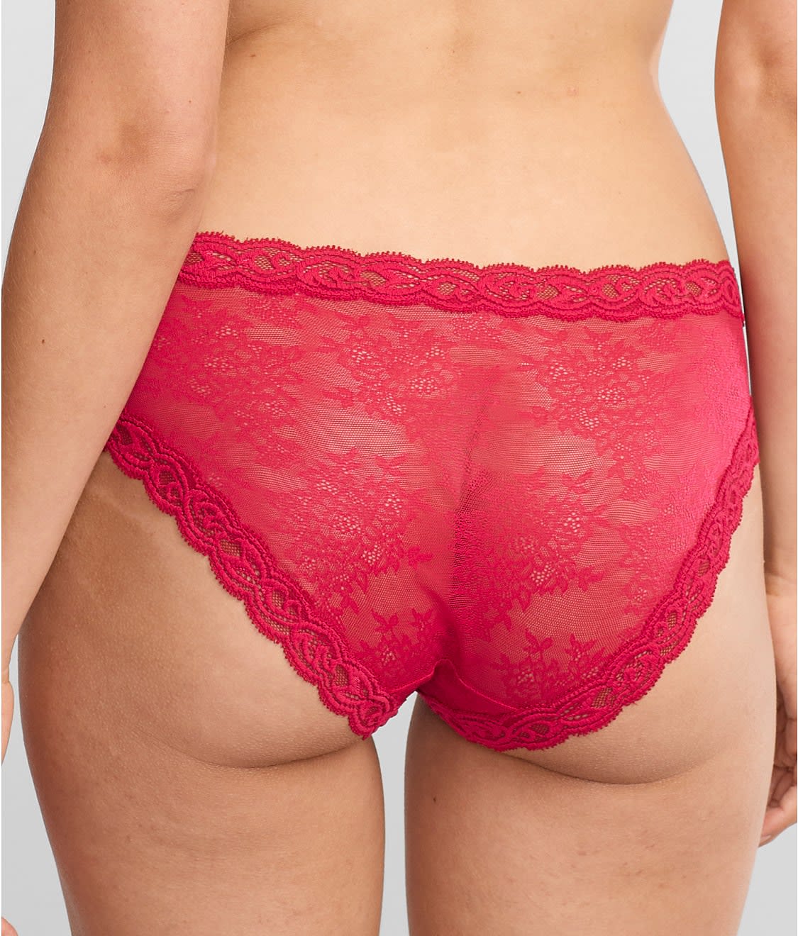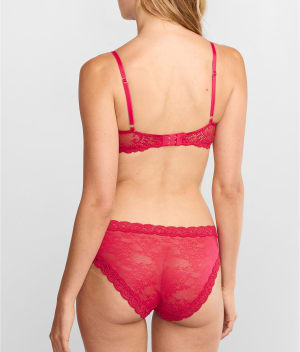 • Slip into this pretty mesh, low rise hipster with lace detail