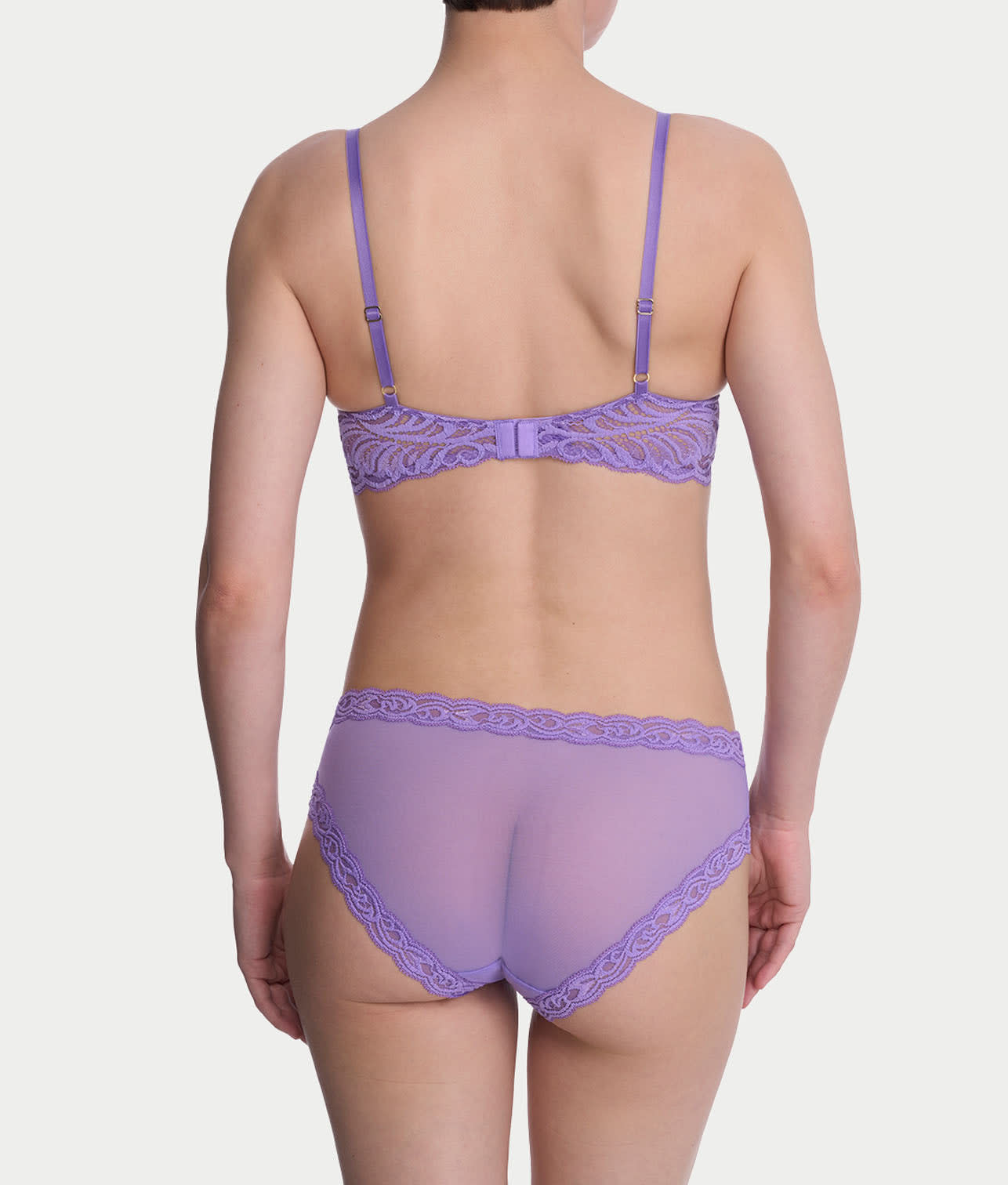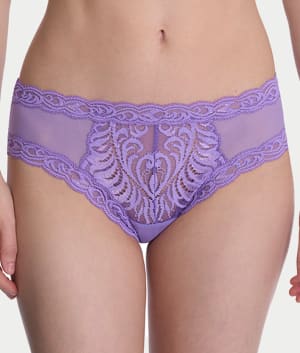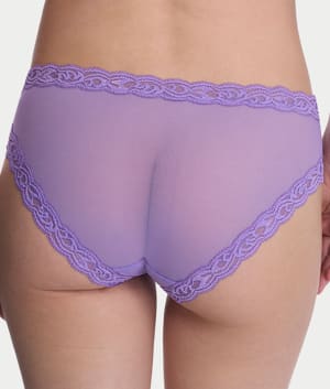 • Slip into this pretty mesh, low rise hipster with lace detail