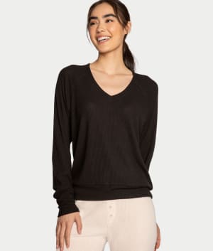 Textured Essentials Ribbed Long Sleeve Knit Top