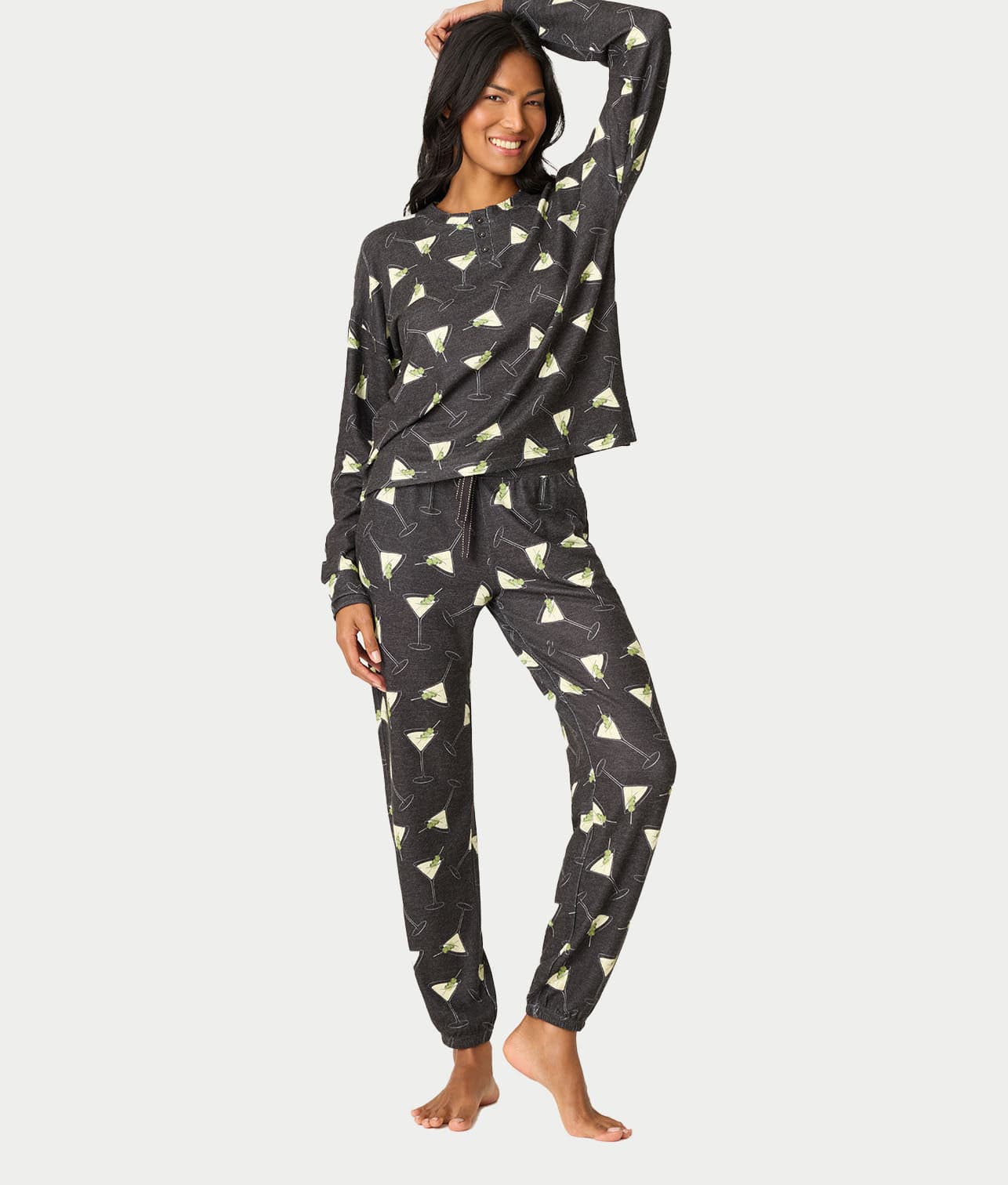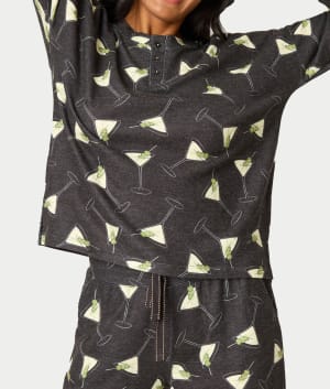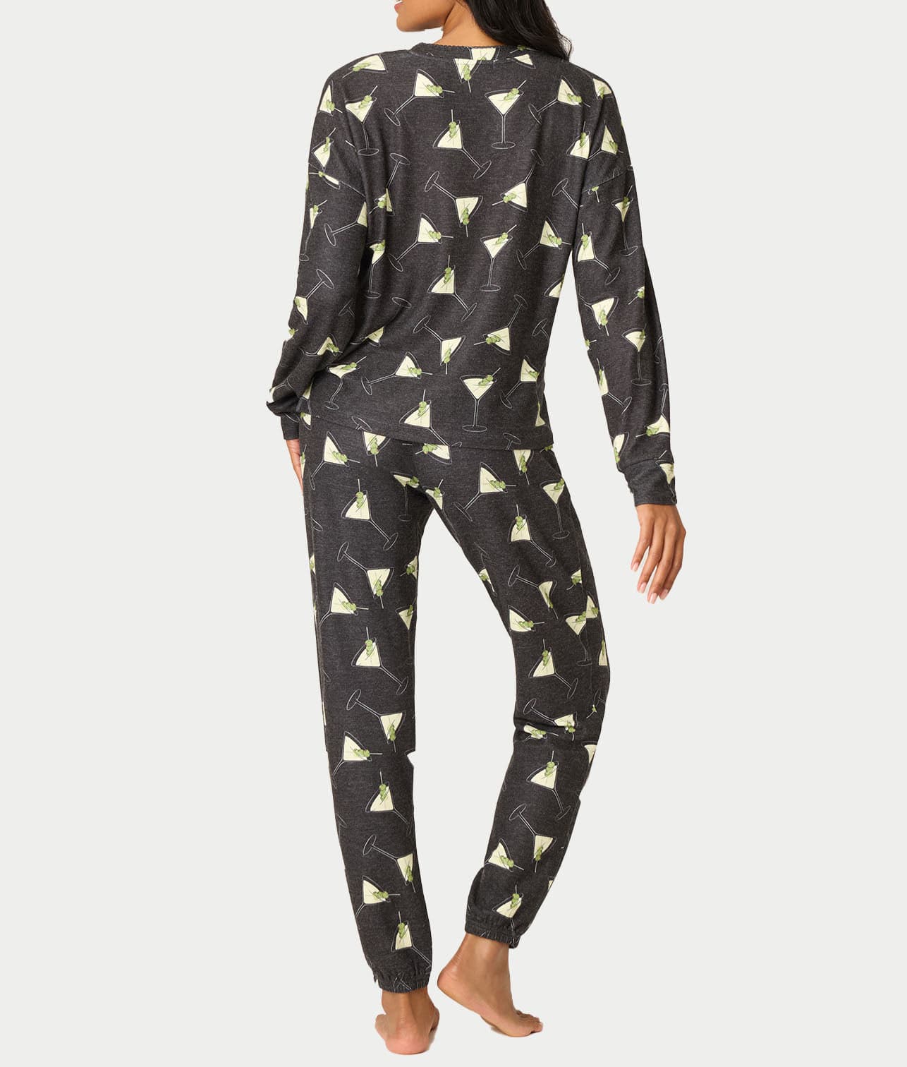 • Unwind in style with this cozy set featuring a playful martini glass print
