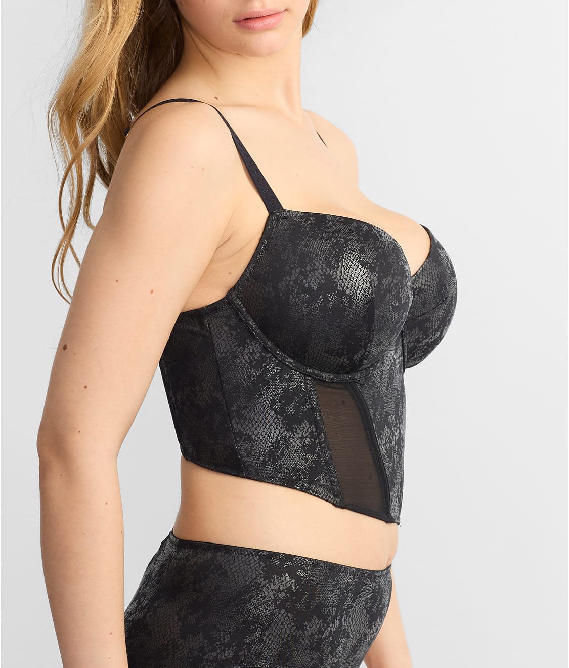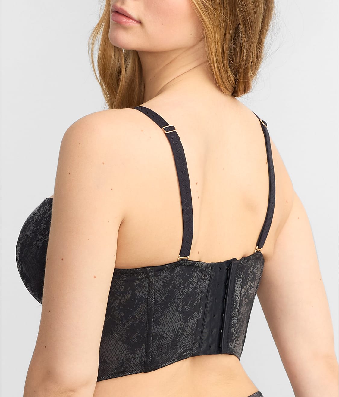 - Fully adjustable stretch jacquard straps convert to criss-cross