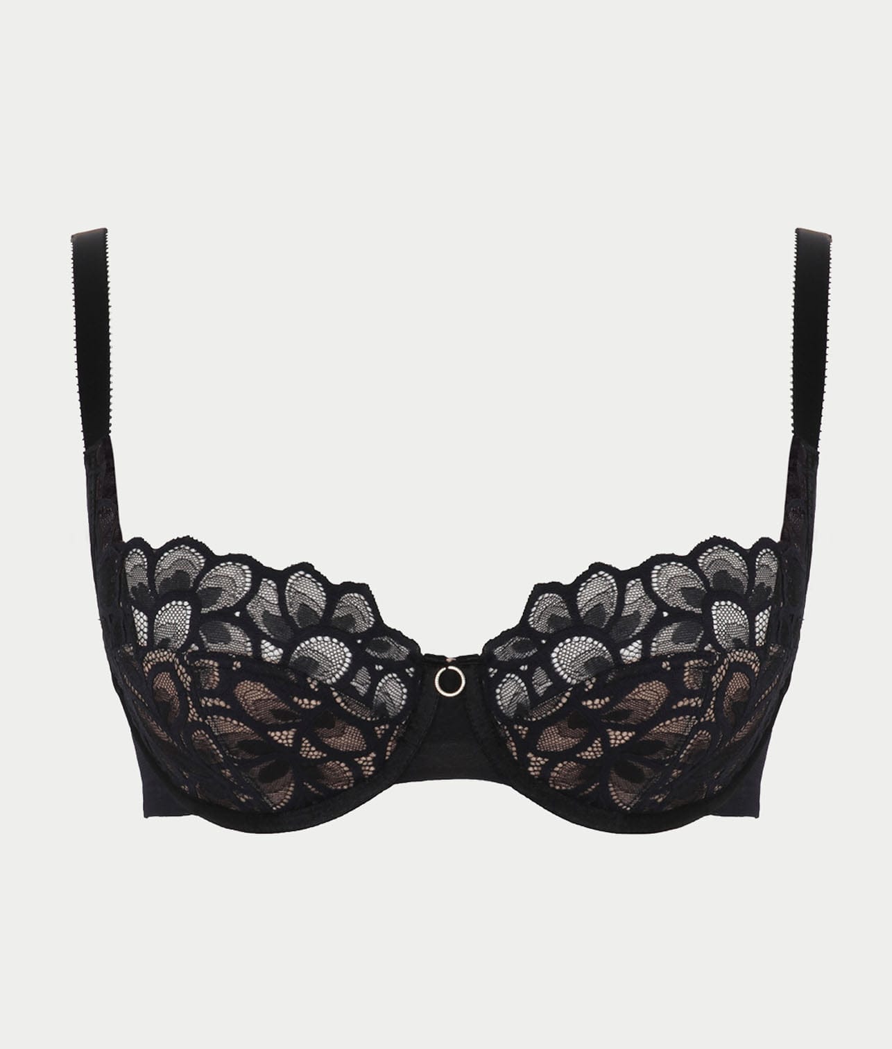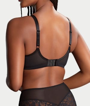 • Semi-sheer top cups with seamed mesh lining at lower cups