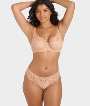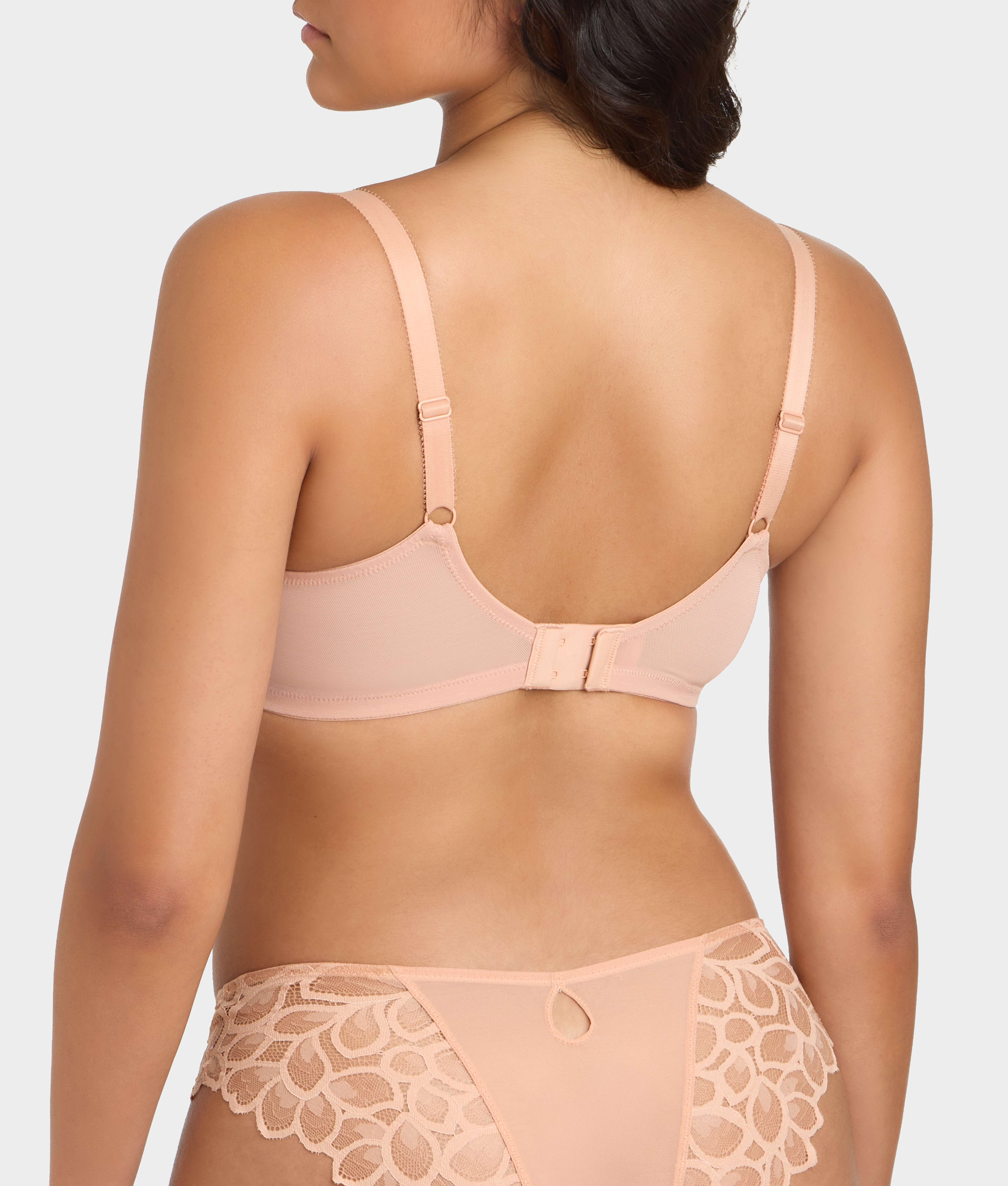 • Semi-sheer top cups with seamed mesh lining at lower cups
