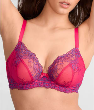 • Feel extraordinary in this lace and tulle plunge demi bra