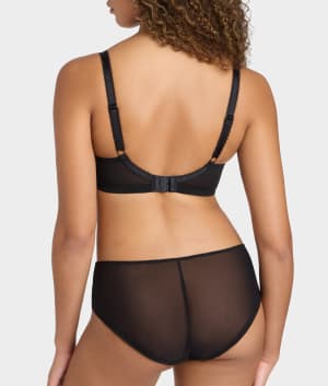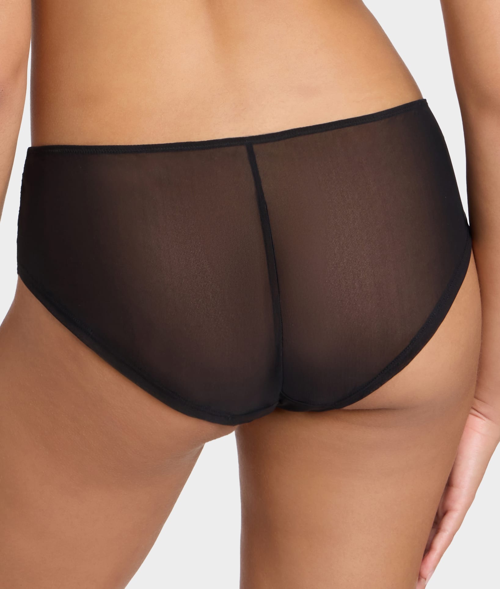 - Sheer, soft mesh with floral lace & cotton gusset