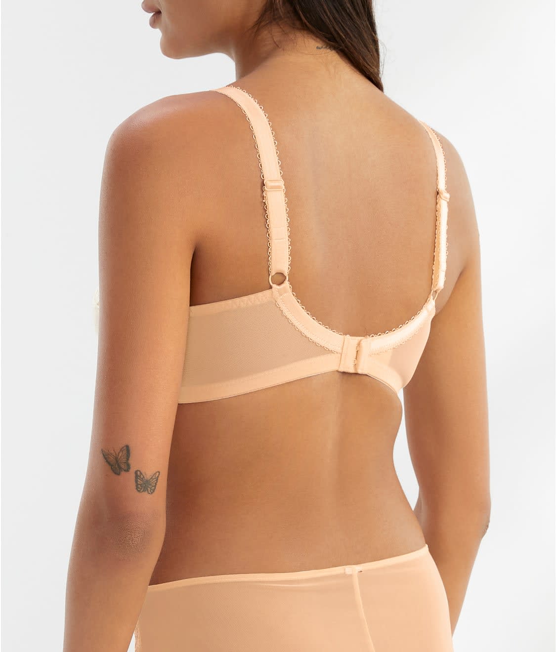 • Excellent shape in seamed mesh-lined, 3-part cups